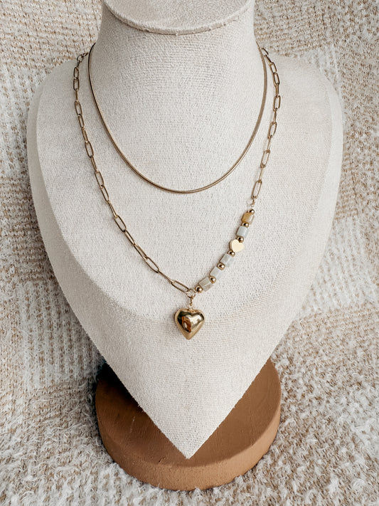 Set Deniz - Collar doble con corazón y aretes de bolita
