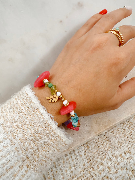 Pulsera multicolor con dije de hoja