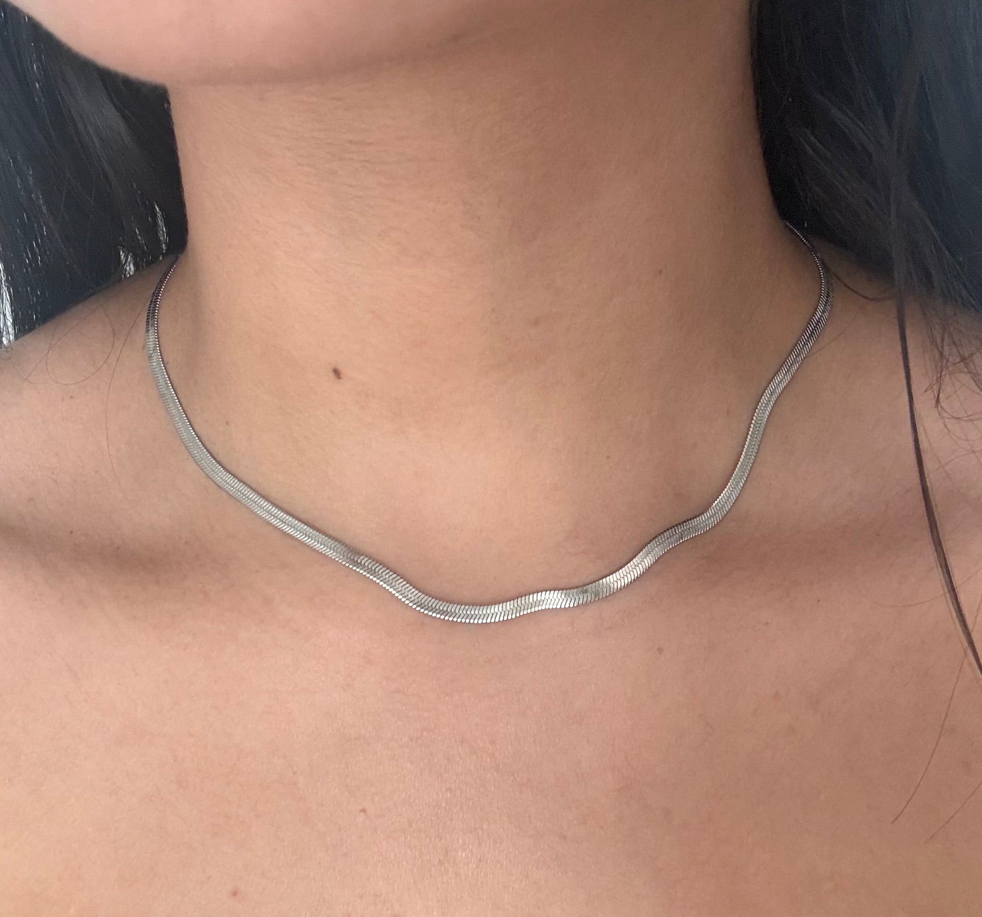 Un clásico moderno que nunca pasa de moda. Su textura suave y brillante envuelve el cuello con elegancia y sutileza, perfecto para elevar cualquier look. Llévalo contigo y añade un toque de lujo a tu día.