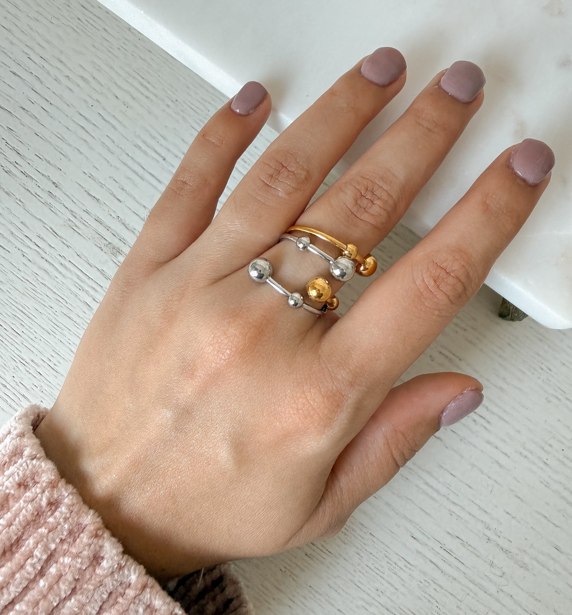 Una joya que combina la elegancia del dorado con la sutileza del plateado. Ideal para resaltar tu feminidad con un toque moderno y versátil. Realza la belleza natural de tus manos!